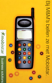 - Une étude qualitative(Egérie, avril 1998) démontre que la campagne est particulièrement bien acceptée par les responsables et managers Telecom dans la mesure où elle leur fournit des arguments et une justifi cation formelle du bien-fondé de leur choix quand ceux-ci décident d'opter pour Mobistar. L'image positive des entreprises de référence enrichit largement l'image de Mobistar.