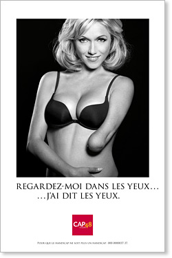 Le point de départ de la campagne de CAP48 repose sur un parti pris fort: la parodie d'une célèbre campagne pour Wonderbra, jusque dans le choix du soutien gorge. Mais la campagne va bien audelà de la référence à l'original. La personne handicapée est mise dans un registre où on ne l'attend pas: la beauté et la séduction. Cette rupture crée l'impact et fait que même les personnes qui n'ont pas vu la campagne originale, ou qui ne s'en souviennent pas, peuvent, elles aussi, comprendre la campagne de CAP4.
