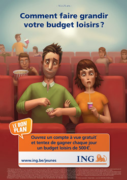 Dans cette campagne on a utilisé un langage d'activation très clair qui valorise en premier lieu les jeunes. Il y avait aussi toujours, en relation avec le MOT, une question centrale à laquelle ING donnait une réponse immédiate ce qui donnait un effet très interpellant. A côté de cela, nous avons opté pour des illustrations afin de dramatiser le tout