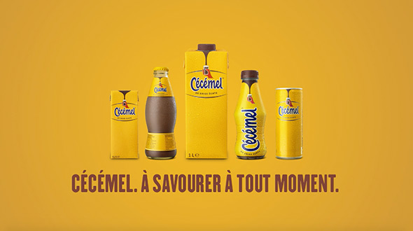 Le slogan "à savourer à tout moment" est utilisé en combinaison avec l'un des éléments les plus forts de la marque Cécémel : la couleur jaune. Chaque lieu d'affichage a été choisi spécifiquement, et a fait l'objet d'un message spécifique lié au moment de dégustation et au format du produit.