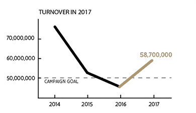 We grew the turnover generated in the local economy by 30% and reached a total of € 58.700.000 in 2017 (+11%)16.