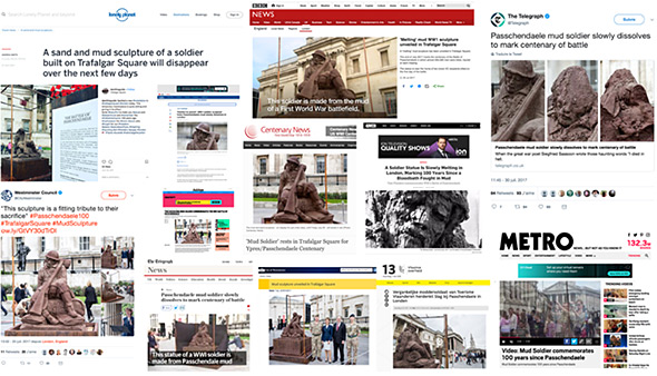 July 24th - the day the Mud Soldier was revealed - served as a hook for journalists. It was also the day we launched, in partnership with the local Visit Flanders British team, our PR outreach using seeding and targeting of influencers (individuals and institutions) in selected international markets and in Belgium.
