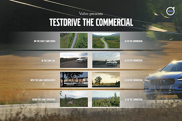 Nous avons imaginé «Testdrive the commercial» pour tester la nouvelle Volvo V90 le long des routes du spot publicitaire. Nous promettions au téléspectateur un essai dans exactement les mêmes conditions que dans le spot TV, l'essai idéal pour profiter du confort et des performances de la nouvelle Volvo V90.