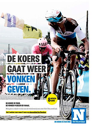 Nous voulions aussi atteindre plus de gens. Des gens qui ne sont pas forcément souvent en contact avec Het Nieuwsblad. À cet égard, nous avons diffusé un spot télévisé et l'avons décliné pour le cinéma et une vidéo en ligne. Nous avons également réalisé différents spots radio et publié nos publicités papier dans des magazines.