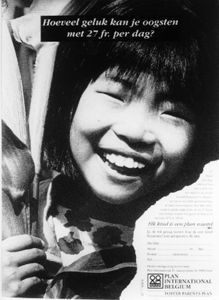 Hiervoor voert Plan International multimedia campagnes (tv, magazines, dagbladen, aangevuld met mailings en brochures) die optimisme, plezier, vitaliteit, volwassenheid en participatie uitstralen. Sinds juli 1991 zorgen ze voor een versnelling van de resultaten, en een absolute verbetering van de marktpositie van een achtste plaats in 1990, naar een haalbare vijfde plaats in 1993. En dit met een produkt dat absoluut het grootste financiële engagement vraagt van alle fondsenwervers op de markt, terwijl de uitval beperkt blijft ondanks de groei en de moeilijke economische situatie. De markt van fondsenwervers die in 1991 nog sterk stijgend was, stagneerde in 1992 rond de 3% groei. Voor 1993 werd zelfs een negatieve groei voorzien. Ellende-moeheid, budgettaire en werkonzekerheid, oorlogshaarden die overal ter wereld opvlammen en een kritiek op onbetrouwbare fondsenwervers speelt hierin mee. Naast de punctuele acties (Somalië, Roemenië, Joegoslavië, Artsen Zonder Grenzen) en de cyclische acties (11.11.11, Vredeseilanden, Week van het Rode Kruis) positioneert Plan International zich naast o.a. Wereld Partner Plan, Amnesty International en Artsen Zonder Grenzen met haar permanente acties. In tegenstelling tot AZG en een actie als «Kom op tegen Kanker» met hun meer spectaculaire media-uitstraling is het stabiele, betrouwbare « merk » van Plan en het zware engagement op afstand een remmende factor.