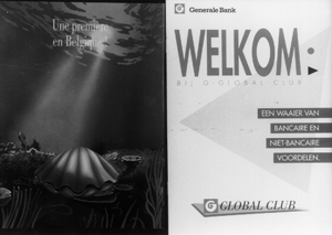G-Global Club est un ensemble de produits bancaires et non-bancaires, offert au client de la Générale de Banque, moyennant un paiement mensuel de 225 BEF, par domiciliation. Les produits non-bancaires sont fournis par CUC, qui en est également le propriétaire. L'idée fut élaborée en primeur à partir d'une formule américaine, mais dut être fortement adaptée au contexte belge, notamment en ce qui concerne les générations visées par la campagne. Les études préliminaires étaient claires: le concept de l'huître sur fond bleu intensif (et assez surprenant dans le monde bancaire), était une perle dans son genre. Qualité, variété (évoquée par les 12 perles incluses), un nouvel outil bancaire: c'était le tout, le G-Global Club.