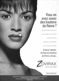 Ici le but de la communication serait plus vaste, autour des mots-clés: informer, mobiliser et sensibiliser. Comme cibles prioritaires, on voulait s'axer d'abord sur les 'Premiers Secours' et les 'Automédications': la moitié des victimes de boutons de fièvre. La raison était le grand potentiel, mais aussi la facilité de les convaincre du pouvoir préventif et curatif du remède. Mais dans le domaine de la médecine il existe une autre cible 'B-to-B' à convaincre: le corps médical. En informant les membres de cette corporation sur l'efficacité prouvée de Zovirax, leur crédibilité et donc leur prestige professionnel se trouvent rehaussés. Pour les pharmaciens et leurs assistants, la campagne les incita à donner au médicament un traitement préférentiel avec, et ce n'est pas le moins important, la possibilité d'une vente globale augmentée avec une marge de profit alléchante. Pour les médecins, dermatologues et dentistes, l'agence Bates choisit un ton délicat et diplomatique pour les informer de l'arrivée du Zovirax 'renouvelé' vendu sans prescription mais en ayant malgré tout la possibilité de le prescrire sous ordonnance, par exemple pour des cas d'herpès génital. Le ton de tous ces messages fut particulièrement bien étudié. Quand on parle 'médecine', il faut se méfier du ton négatif et répulsif, qui détourne au lieu d'attirer. C'est ce que fit l'agence: le message fut direct, mais aussi formulé de façon positive - il ne fallait surtout pas montrer des boutons de fièvre répugnants. Une stratégie carrément opposée aux discours 'curatifs' des concurrents. On voulait un concept où il reste une place pour une fraîcheur attirante.