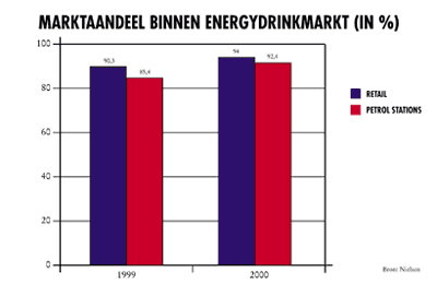 Het aantal verkochte units (blikjes van 25cl) en de omzet stegen spectaculair en overtroffen de stoutste verwachtingen. 87% meerverkoop in ’98, 71% meer in ’99 en 47% meer in ’00. Met niet minder dan 25 mio verkochte blikjes in 2000 in België is Red Bull een belangrijke speler geworden, niet alleen in de markt voor energydrinks maar zelfs in de frisdrankenmarkt in het algemeen.