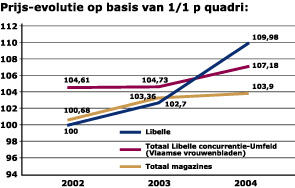 Marktaandeel in het segment vrouwenbladen verstevigen met 0,3% per jaar.