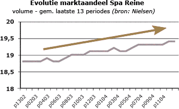 Dankzij de nieuwe imagocampagne is Spa Reine erin geslaagd de structurele daling van het marktaandeel stop te zetten, en sterker nog, deze om te buigen tot winst: van 18,8% in 2002 naar 19,4% in 2004. Een opmerkelijke groei voor een markleider in een zeer competitieve omgeving.